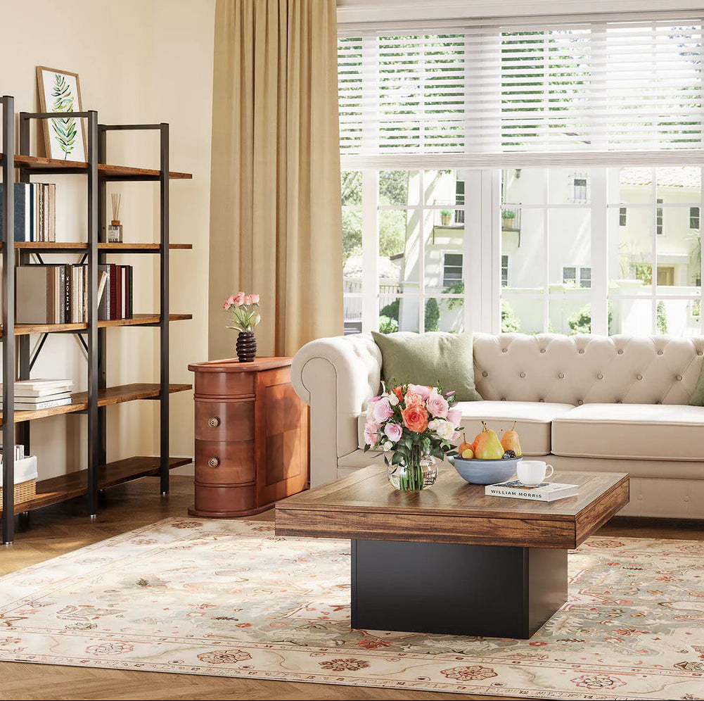 Rustic Etagere Bookshelf with Drawers, Industrial Display Bookcase for Home Office