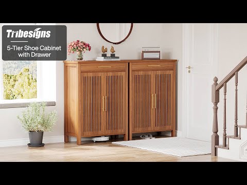 Flexible Storage Cabinet - With five versatile levels, this farmhouse shoe cabinet holds up to 20 pairs of shoes, depending on their size and height. The removable dividers can accommodate different types of shoes, such as flats, sneakers, or boots.