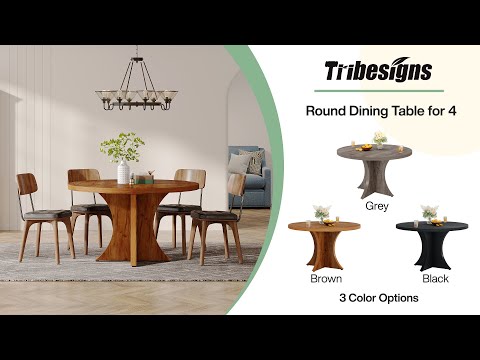 120cm Round Dining Table, Farmhouse Kitchen Table with Pedestal Base for 4-6