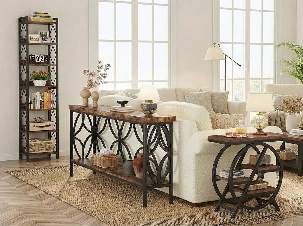 - Crafted with great attention to detail and built to last, this console sofa table easily complements various interior styles, including vintage, industrial, or contemporary.