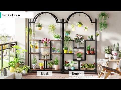 Tribesigns 5-Tier Indoor Plant Stand, Arched Metal Plant Shelf with Hanging Hook