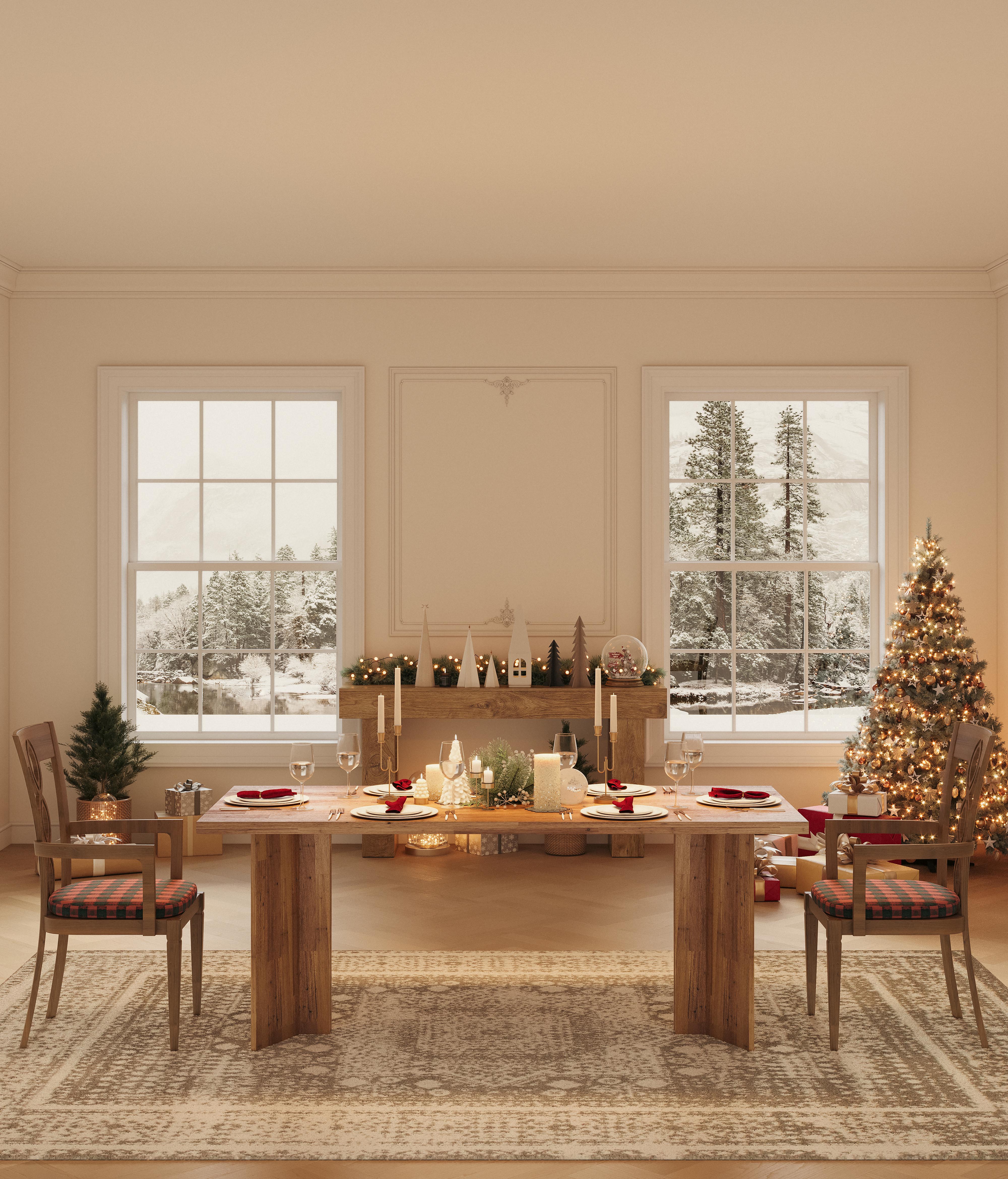 Wood Dining Table, Farmhouse 180cm Kitchen Table for 6 People